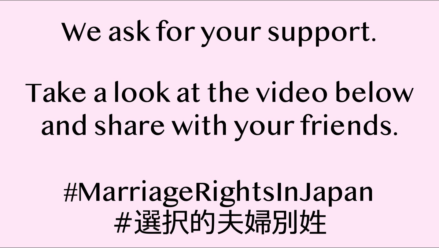 Share this page and what is happening in Japan in your SNS accounts with hashtags #MarriageRightsInJapan and #選択的夫婦別姓