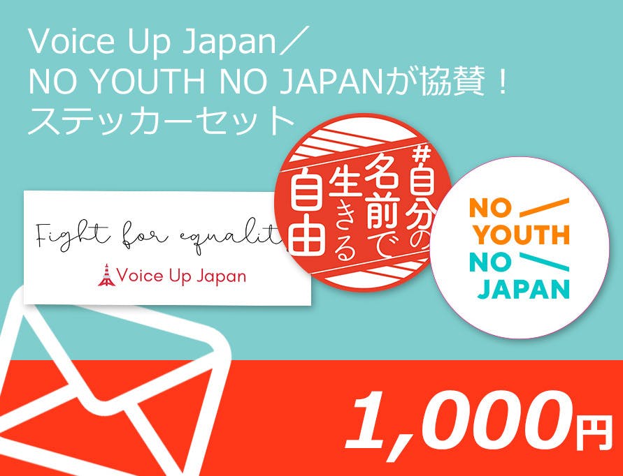 ジェンダー平等に取り組む「一般社団法人Voice Up Japan(ヴォイスアップジャパン)」と、U30世代の政治参加を促す「NO YOUTH NO JAPAN(ノーユースノージャパン)」が私たちの活動に共鳴し、ステッカーを提供してくださいました。