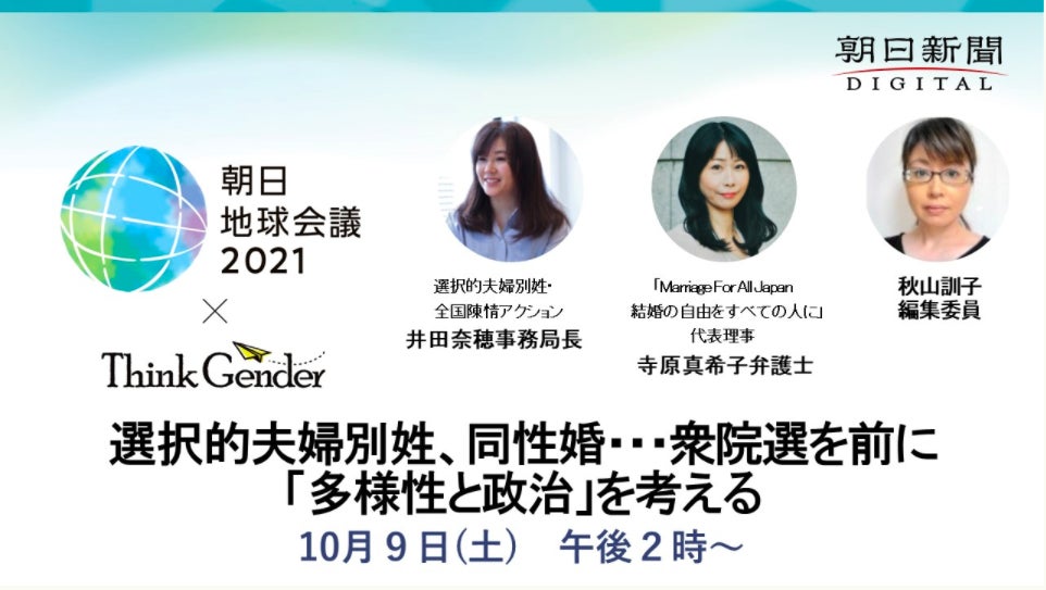 ※本イベントは「朝日地球会議2021」、朝日新聞「Think Gender」キャンペーンの関連イベントです。