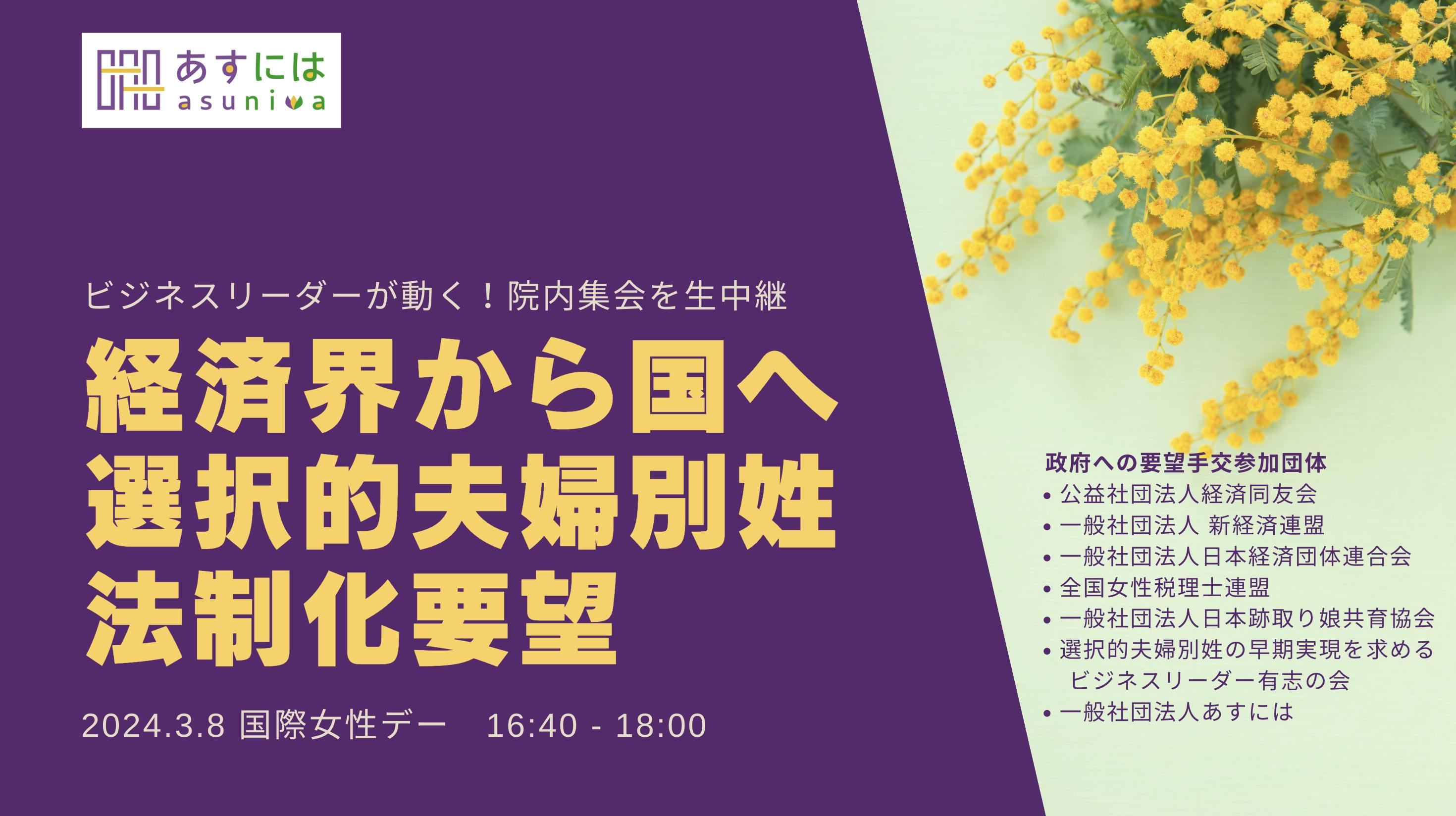 「経済界から国へ選択的夫婦別姓法制化要望」院内集会