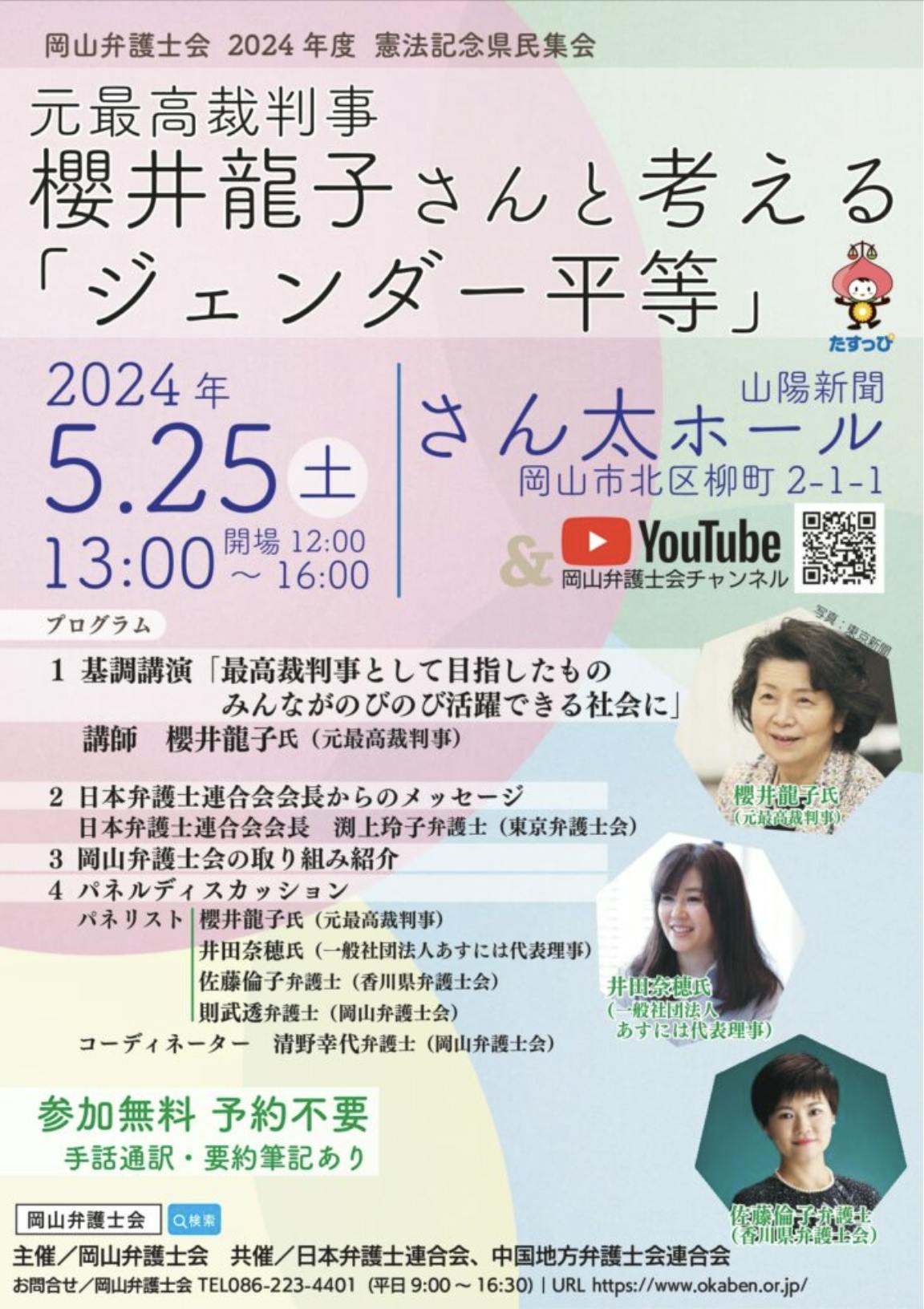 ■5月25日(土)13:00〜16:00 岡山弁護士会 2024年度憲法記念県民集会