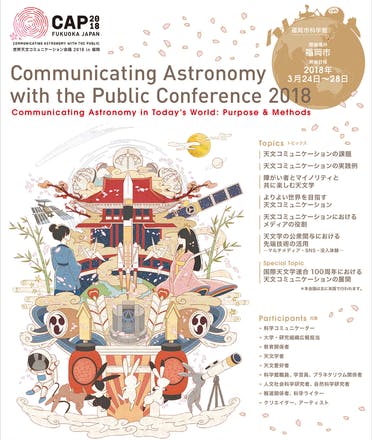 「世界天文コミュニケーション会議 CAP in 福岡」の日本語ポスターが完成しました。日本の伝統文化と最先端の天文・宇宙科学をイメージしたメイン画像にご注目ください。