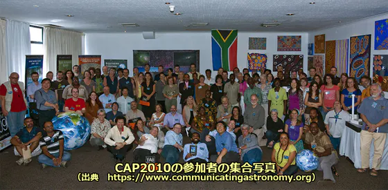 最終日は、最後の基調講演と全体講演から始まります。基調講演のトリを務めるジェニファー・オーレットさんは、「経過報告1」でもご紹介したように、4冊のポピュラーサイエンス本の出版で国際的に知られた科学ライターです。それに続く6本の全体講演では、日本からも二つの発表があります。午後は最後の分科会。四つの部屋に分かれて24もの発表と、最終日もぎっしりと中身の濃い予定が組まれています。そして、17:30からはいよいよクロージング。新しい見識や友達、先進的な活用事例、この5日間の経験を経て、参加者はどんな感慨を抱くのでしょう?おそらくあっという間の5日間に違いありません。今回の扉絵には。8年前に開催された南アフリカ大会の集合写真を使いました。今回の集合写真でもきっと、こんな風にキラキラした笑顔をみられることでしょう。