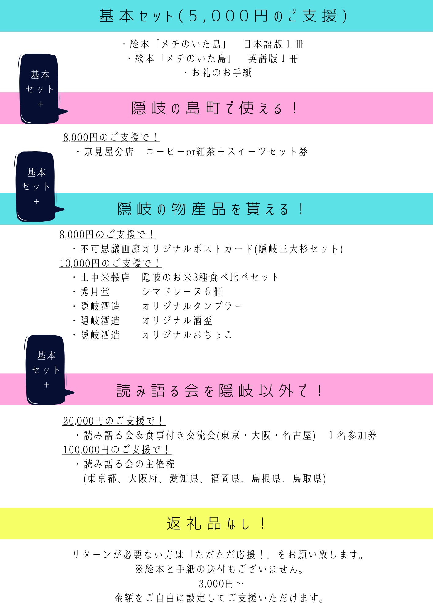 2020/08/01 07:1831日の午前中に、隠岐の島町の久見竹島歴史館にメチのいた島の英語版が到着しました。杉原さんと久見地区のお母さん方が到着した絵本を開封し、絵本の完成の感動を共有していました。また、その様子を地元新聞社が取材をしてくれました。今後、まずはクラウドファンディングでご寄付を頂いた皆様に向けて返礼品を発送できるよう準備を進めて参ります。皆様のお手元に届くまで、今しばらくお待ち願います。 もっと見る