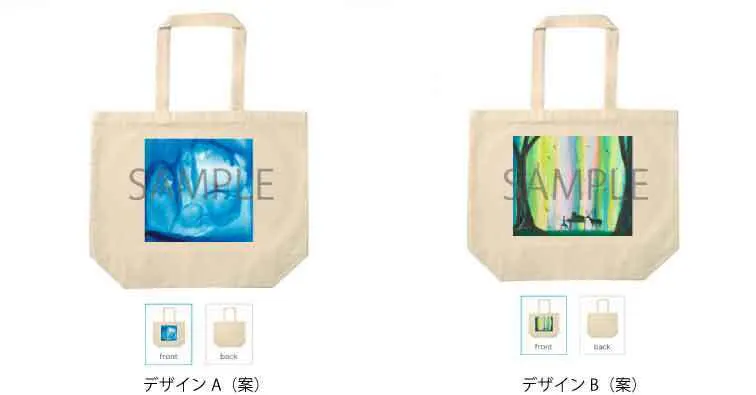 アルバムジャケット候補にもなっている2種類のデザインを、トートバッグにしてお届け致します。