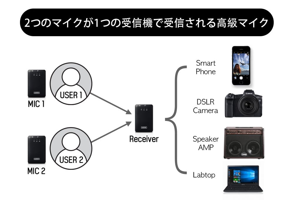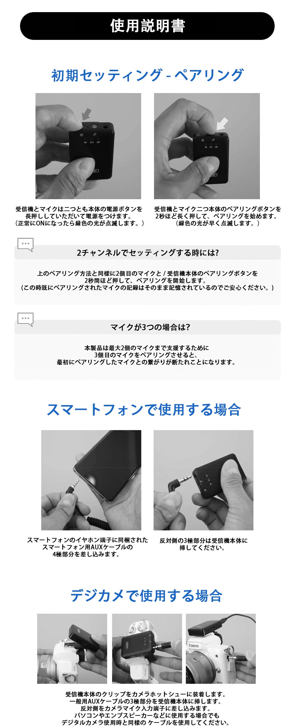 #スマートフォン無線ピンマイク #Youtubeマイク #セミナー用無線ピンマイク #DSLR無線ピンマイク #2チャンネル無線マイク