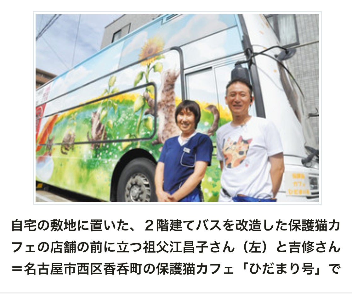 こんにちは、名古屋市で二階建てバスにて保護猫カフェひだまり号をやっております。祖父江昌子と申します。愛護センターから赤ちゃん猫を譲り受け、育て里親さんへ橋渡しをしております。動物看護士、動物介護士、、動物取扱業1種、2種を持っており、正しい管理のもと保護猫たちをお世話しております。