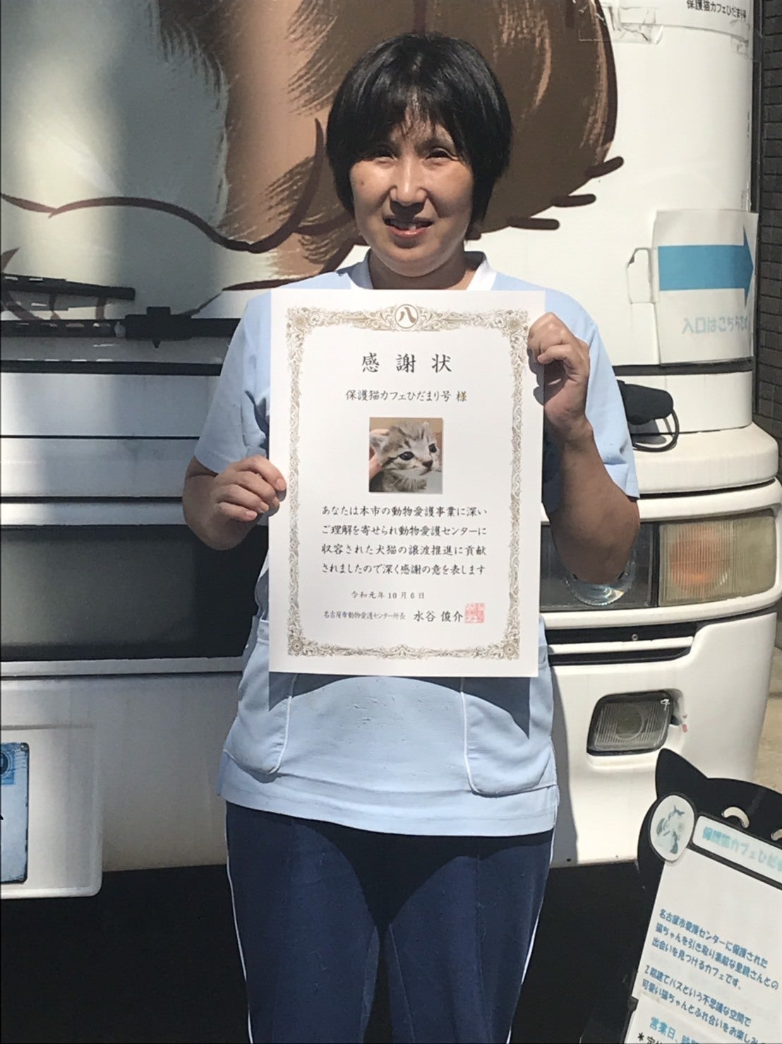 2019年夏には保護猫活動に対して名古屋市から感謝状をいただきました。