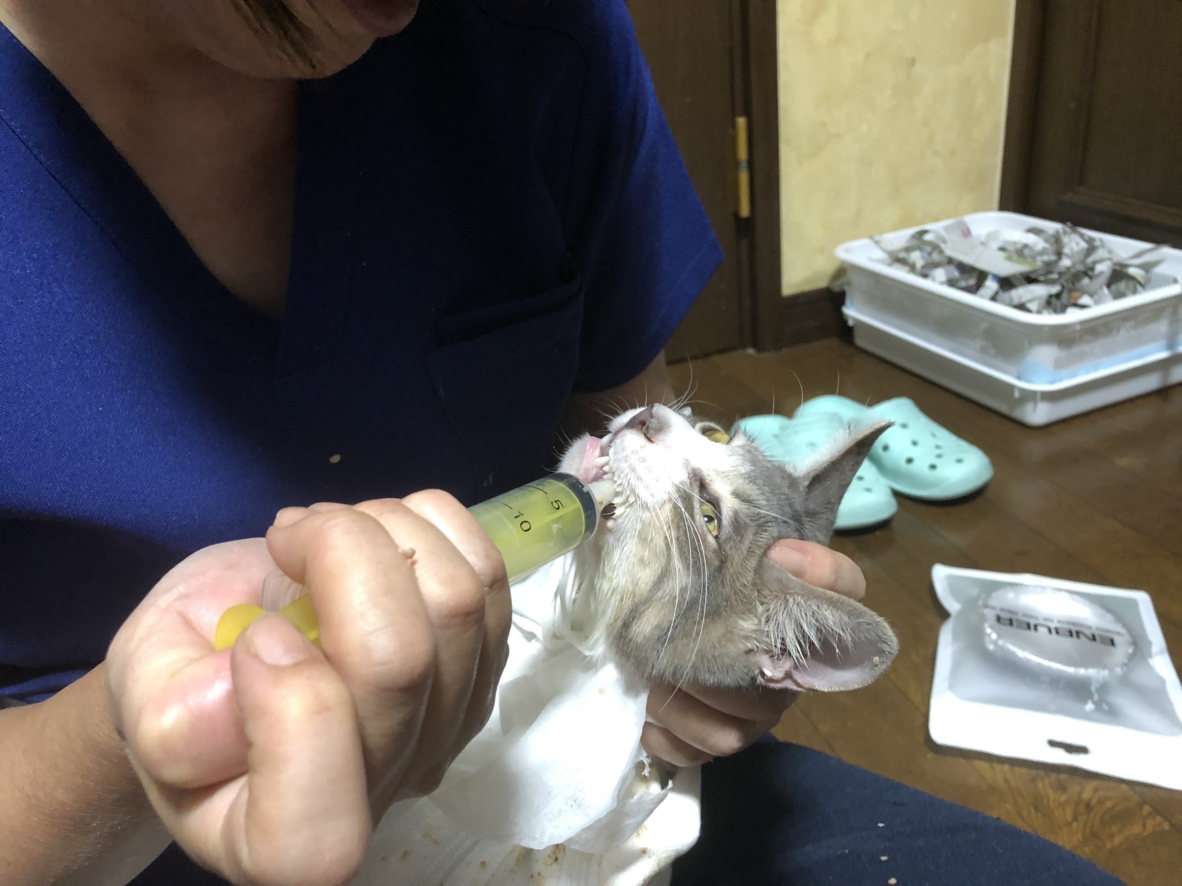 目の見えない赤ちゃんから育てる事は容易ではありません。未熟で免疫力も弱いので色んな病気にかかりやすいです。この1年半の間に何匹もの猫を見送って来ました。私は助かる命なら助けてあげたいのです。沢山の皆さんからご支援をいただき、その為に自宅の3階を改装し隔離部屋も6月に作りました。その時にICUも完備しました。突然、呼吸状態がおかしくなった猫や低体温の猫をICUで管理することによって何匹もの命を救って参りました。保護猫カフェという環境上どうしても感染してしまう事が避けられません。その為、毎月の病院代も30〜50万円にのぼります。健康状態を悪化させた状態で里親さんにお渡しする事のないよう、風邪、胃腸炎などの病気も治療します。そして中にはエイズ、脳神経による足のフラつき、FIPなどの病気の猫もおります。現在3匹のFIPの猫がおります。クッキーは、毎日1000mgを投薬しなければまりません。その金額は、約22.990円 ふくは、250mg 約6.050円 さすけは、約4.840円 何故 量が違うのかというとFIPのタイプ、体重などによって違うのです。1日に合計 約33.880円もの薬代が必要です。無茶な金額だと思います。しかし、彼らにも平等に治療をしてやりたいんです。名古屋市が収容した猫のお世話をしておりますが行政からの病気に対する支援は一切ありません。全て自己負担で賄っております。その為、カフェの利益だけではエサ代だけで終わってしまい病院費用まで回りません。名古屋市の掲げる殺処分ゼロの手助けをする為、この活動を始め1日15時間以上の労働時間を夫婦でこなしております。