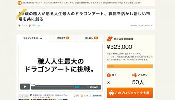 2012/05/09 13:29こんにちわ、AD-ON project代表を務めております、馮 意欣です!遅ればせながら、TADYさんのドラゴンアートの活動報告も含め、この場を借りて御礼をさせて下さい。この度は皆さまのご支援、ご協力を多く頂き、お陰さまでプロジェクトを達成することができました!!掲載直後から、パトロンになって頂いた皆様をはじめ、温かい応援のコメントの数々、情報共有していただいた方々、そして、撮影協力に協力して頂いた友人、企画から相談に乗っていただいた仲間、一人一人の小さな思いが、この大きな龍の中に詰まっていると思いす。TADYさん含めプロジェクトメンバー一同心より、感謝しております。完成予定である5月12日までどうぞ、ご期待くださいませ!引き続き、よろしくお願い致します!!AD-ON project代表 馮意欣 もっと見る