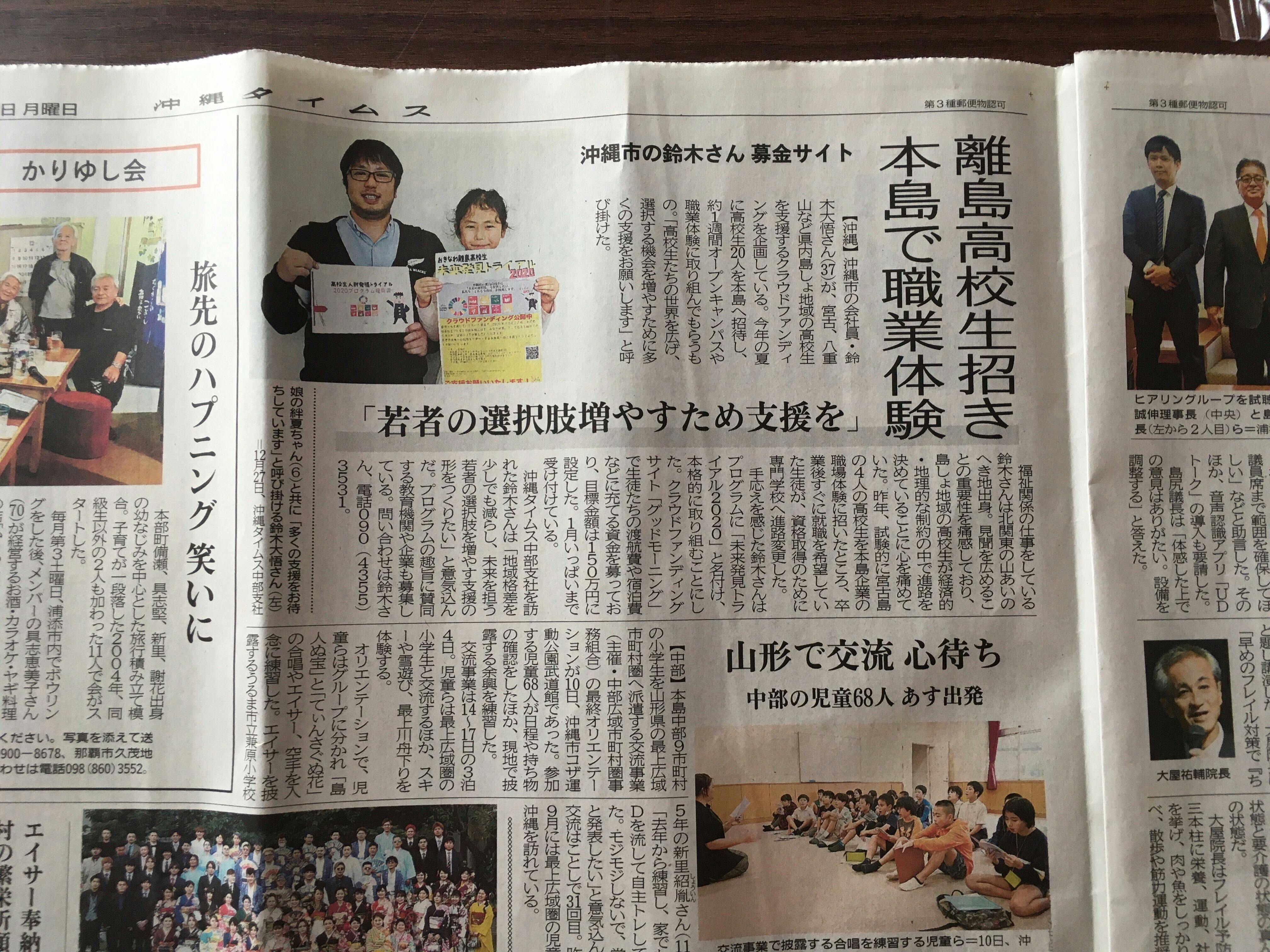 2020/01/22 19:33沖縄タイムス地方面にて取り組みを掲載していただきました。 もっと見る