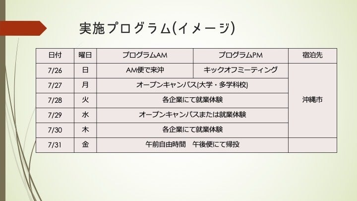同 年7月26日〜31日 :職場・職業体験プログラムの開催