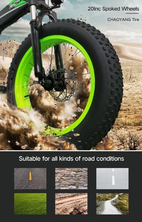 まず、悪路や砂地などのMTBだとタイヤの駆動力が出しづらい場所でも走れちゃいます。(*悪路は当然通常の道に比べ走りづらく時には滑る場合もございます。特にアイスバーンの路面での使用は急に止まれない可能性があります。スピードの出しすぎには十分注意されてください。)