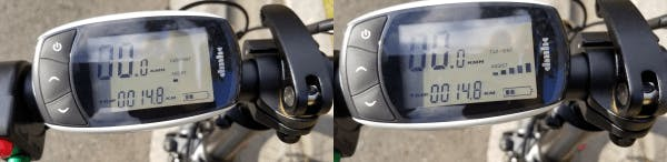 スピード、走行距離、バッテリー残量が表示されます。