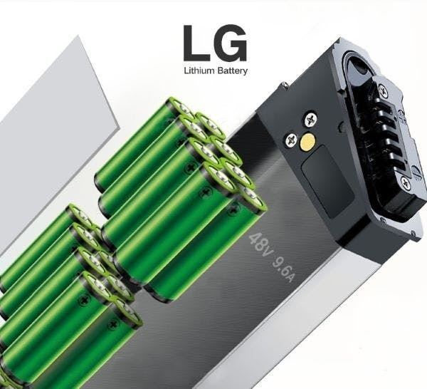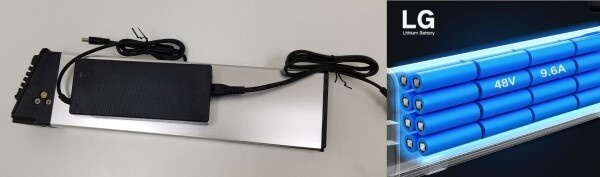 バッテリーは48V9.6AHのあの有名な韓国LG社製のリチウムイオンバッテリーです。