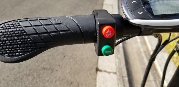 左側のハンドルには「ヘッドライトスイッチ(赤)」「ホーンスイッチ(緑)」がついています。