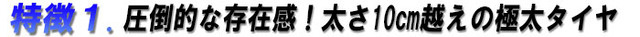 TOP-015の特徴でまず挙げられるのはホイールサイズ20インチ、タイヤの太さ驚異の4インチ(幅10センチ以上)です。