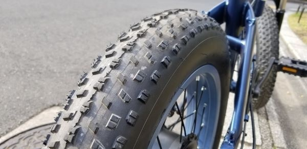 エアボリュームが一般的なMTBと比べて多いので、サスペンションなしでも衝撃減衰能力が高いのが特徴です。