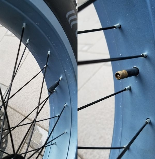 タイヤの空気バルブはアメリカンバルブです。