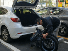 TOP-015は半分に畳めるため工具等一切無しでトランクに積んで、ドライブ先の移動手段として活躍できます!