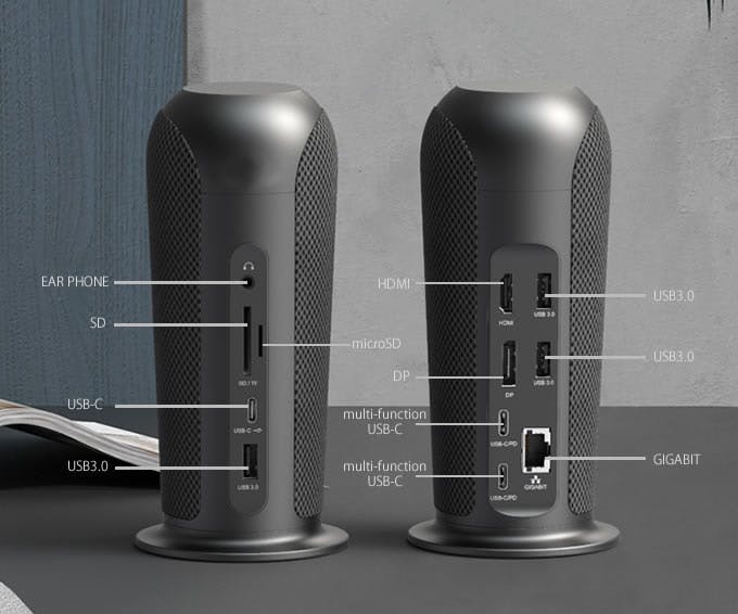IZELLスピーカードッキングステーションは、本体がスピーカーが搭載されたUSB-C多機能ドッキングステーションです。