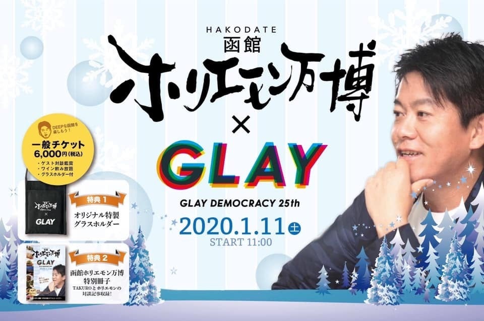 亀田誠治1964年生まれ音楽プロデューサー・ベーシスト。これまでに椎名林檎、平井堅、スピッツ、GLAY、いきものがかり、JUJU、大原櫻子、GLIM SPANKY、山本彩、石川さゆり、MISIAなど数多くのプロデュース、アレンジを手がける。2004年に椎名林檎らと東京事変を結成し、2012年閏日に解散。2007年第49回、2015年第57回の日本レコード大賞では編曲賞を受賞。2019年6月1,2日に自身のプロデュースによるフリーイベント「日比谷音楽祭」を東京・日比谷公園一帯で開催。2020年も5月30,31日に開催が決定している。怒涛の対談の詳細、他コンテンツの詳細については下記サイトにも記載されています。https://expo.horiemon.com/hakodate/チケットサイトはこちらです。https://passmarket.yahoo.co.jp/event/show/detail/01103r10juj2w.html?fbclid=IwAR3b7geDy5Cp3m1ohn6t3tTZsjK5g2wz1Cc4dlHU1WAr71x68eVub1LOL80当日まで準備を進めています。1月11日の函館ホリエモン万博もお楽しみにしていてください。クラウドファンディングでの当日スタッフ募集も引き続きよろしくお願いします。