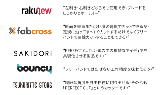 小さい頃から工作が好きで、自分の手の中で作品が形になっていく様子や、作品が完成した瞬間の感覚に魅了されていました。そんな思いのもと、2015年末に Perfect Cut は生まれました。商品化の道は容易ではなく、100人以上のユーザーに実際に使用してもらい、幾度となく改良を繰り返してきました。多くの方々の協力のもと、Perfect Cut は、2017年夏に台湾のクラウドファンディングサイトのzeczecで支援金目標を達成し、2018年に量産・出荷完了しています。今回は、新たに日本でキャンペーンという事で、今後日本の皆さんと Perfect Cut を通してモノ作りの感動と素晴らしさを共感できることを一同楽しみにしております!