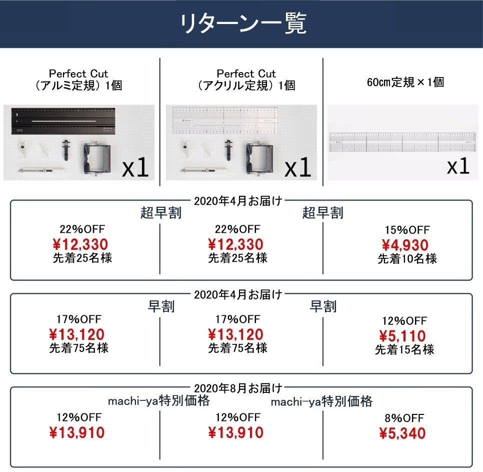 キャンペーン終了後の2020年4月に超早割と早割分の配送を予定しております。その後2020年8月にmachi-ya特別割引分の配送完了予定です。