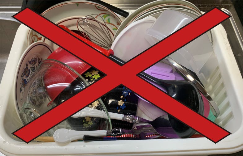 我が家の食事後、母と妻が箸やスプーン、調理道具などを洗ってくれた後、