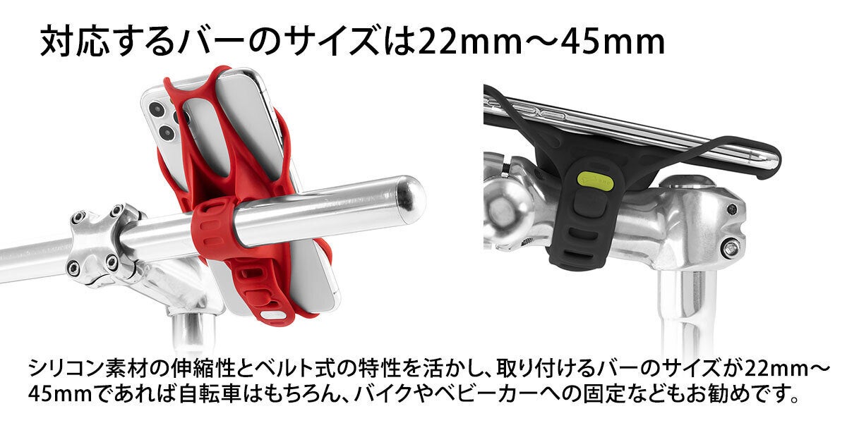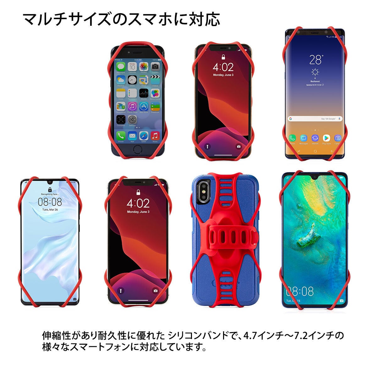 伸縮性があり耐久性に優れたシリコンバンドで約4.7インチ~7.2インチのスマートフォンに対応