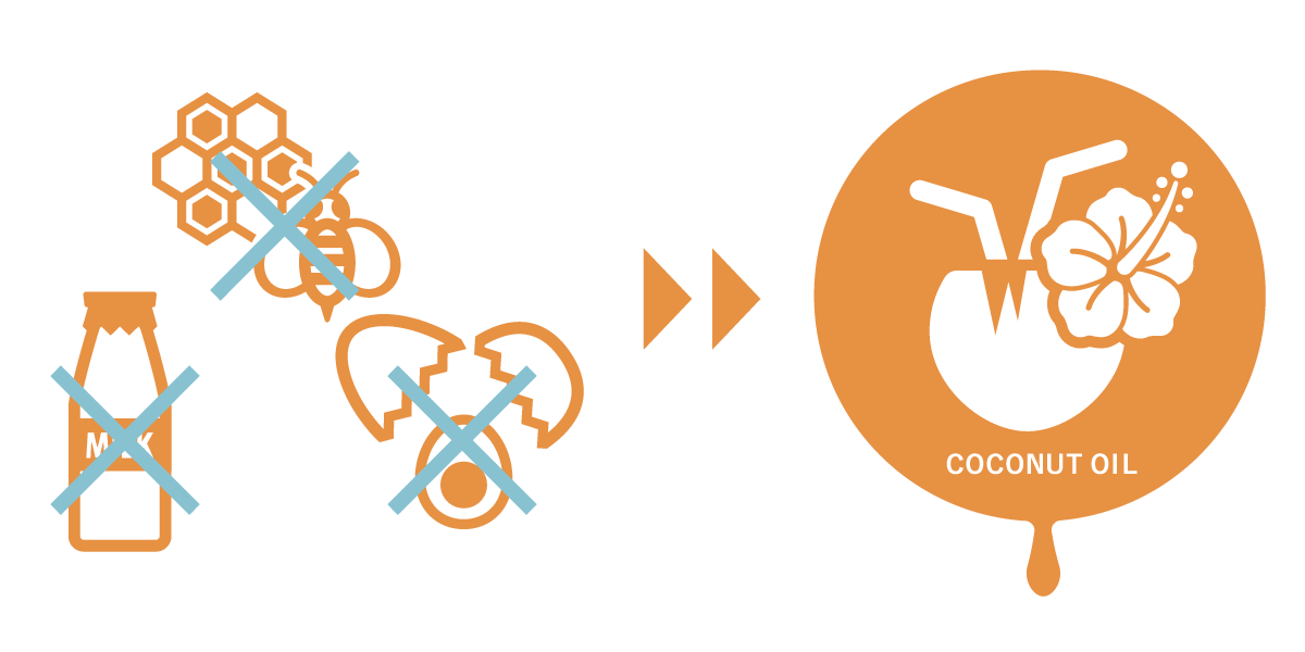 オーガニックココナッツオイルで、バター不使用とは思えないコクを出しています。