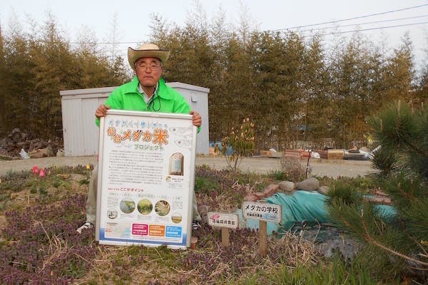 東日本大震災の津波被害から復旧した、仙台市新浜地区にある遠藤環境農園では、仙台在来種のメダカを田んぼに放流し水田をビオトープにしています。野生のメダカは絶滅危惧種ですが、この農園ではゆっくり時間をかけて増えています。