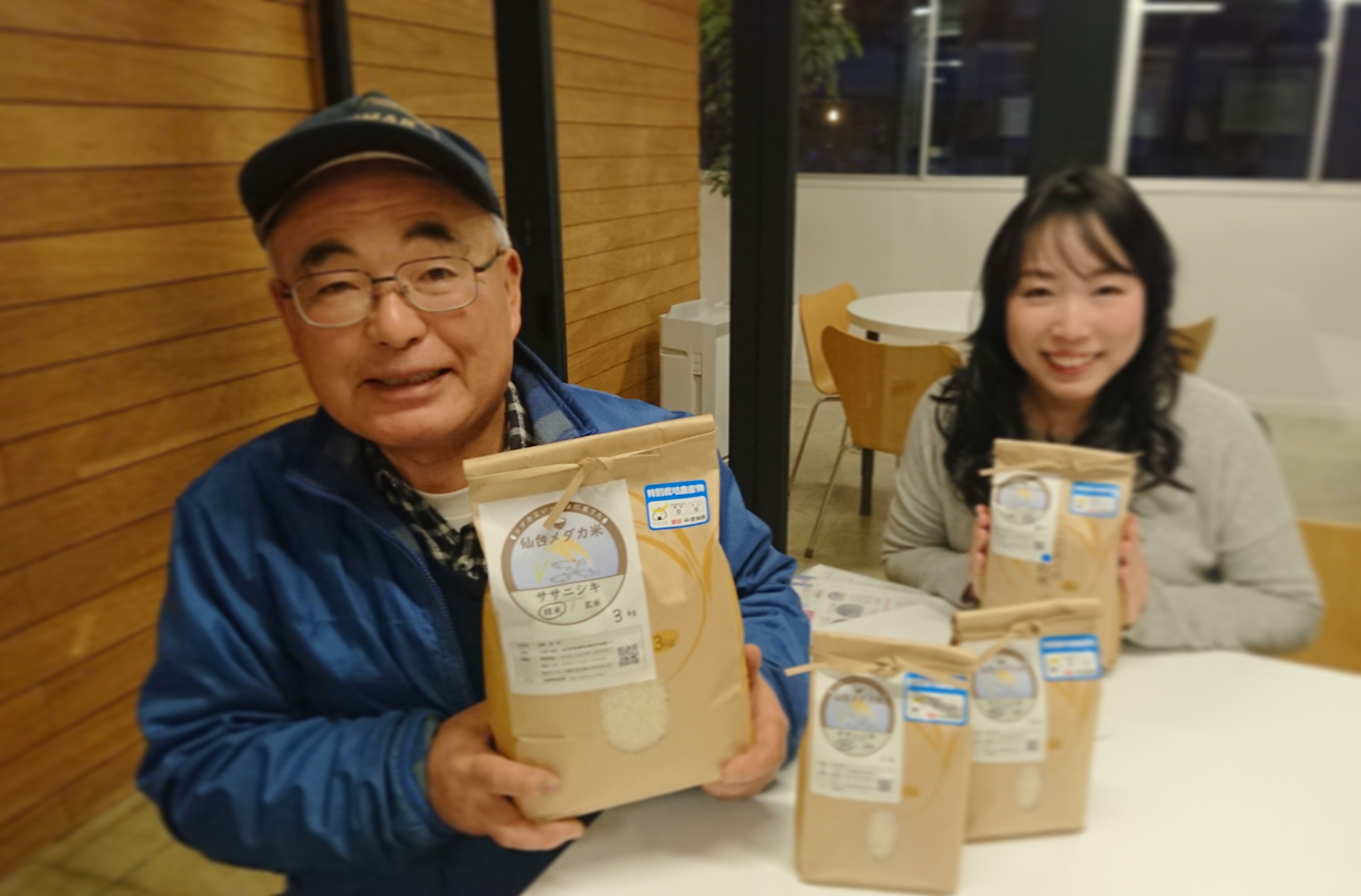 「メダカと一緒に育ったお米」そう聞いただけで、なんとも可愛らしく感じて大好きになってしまいました。そして、メダカのプロジェクトを知り、環境について深く考えさせられました。野生のメダカが絶滅危惧種になっていることはご存知でしょうか?少し前の日本ではありふれた魚でしたが、今では危機的状況です。確かに、身近でメダカを見ることはないですよね。仙台市沿岸部の田んぼに僅かに生息していた野生のメダカは、東日本大震災の津波でいなくなってしまいました。でも!!震災の前年に、そのメダカを宮城教育大学が研究のために採取していたのです。その残っていたメダカを守るために仙台市八木山動物園や市民が里親となり、「メダカの里親プロジェクト」が始まりました。震災後の沿岸部で復旧が進み、農業が再開される頃、メダカは里親からふるさとの田んぼにかえされました。田んぼにメダカを放流し、お米と一緒に育てられるのです。農薬を使うとメダカは死んでしまうので、田んぼは無農薬です。無農薬なら良いかというと、それだけではメダカは生きられません。コンクリートで舗装された水路ではダメで、土を入れた鉢を入れるなどの対策が必要です。現代で、農業と自然の生態系が共存するには様々な工夫をしなければなりません。その努力の甲斐あって、メダカは増えています。メダカが自然本来の生態系を見直すきっかけとなり、復興の象徴にもなっている、それが「仙台メダカ米プロジェクト」です。そのメダカ米をつくっているのが、八木山動物園園長だった遠藤さんです。メダカの里親だった園長さんが定年退職後に遠藤環境農園でメダカ米を作っていらっしゃるのです。遠藤さんはとても実直なお人柄で、そして知的な一面もお持ちで、魅力に溢れた方。お写真からも伝わると思います!次回は遠藤さんのことを書きますね。