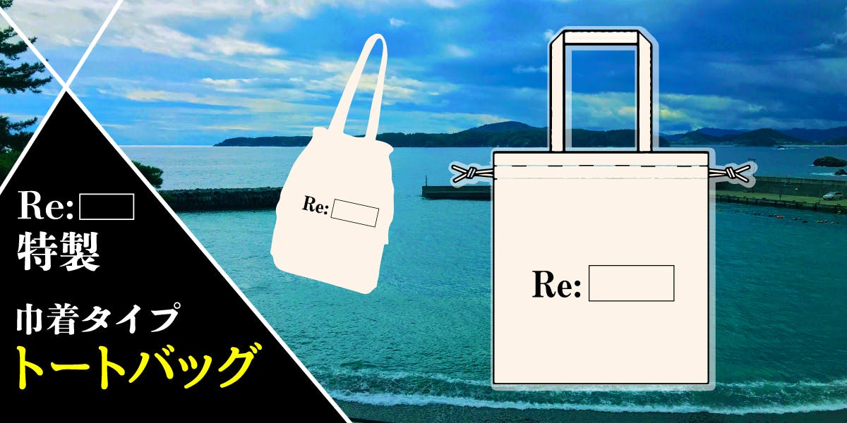 ・Re:活用プロジェクト特製トートバッグ(サイズ:幅380mm・高さ410mm・持ち手25mm × 560mm・マチ120mm、素材:コットン薄手5oz)※完成イメージ図です。