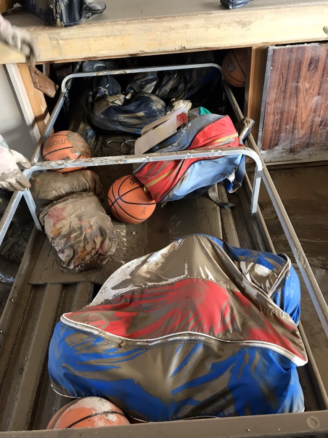 ▲ステージ下にあった道具・備品は全て泥に浸かってしまいました。