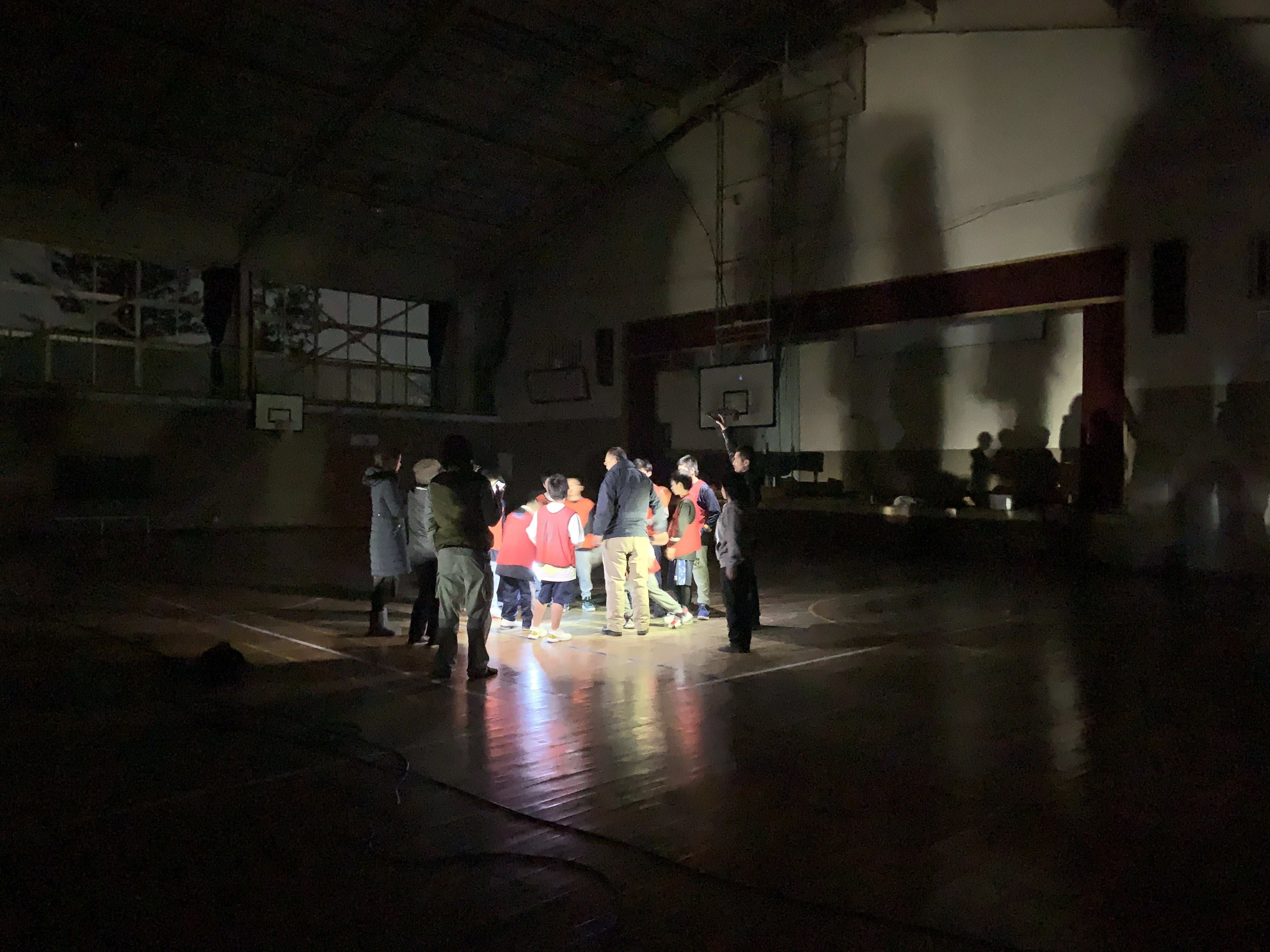 ▲練習場所が確保できなかった日には長沼小学校で投光器を付けた中での練習も…🏀