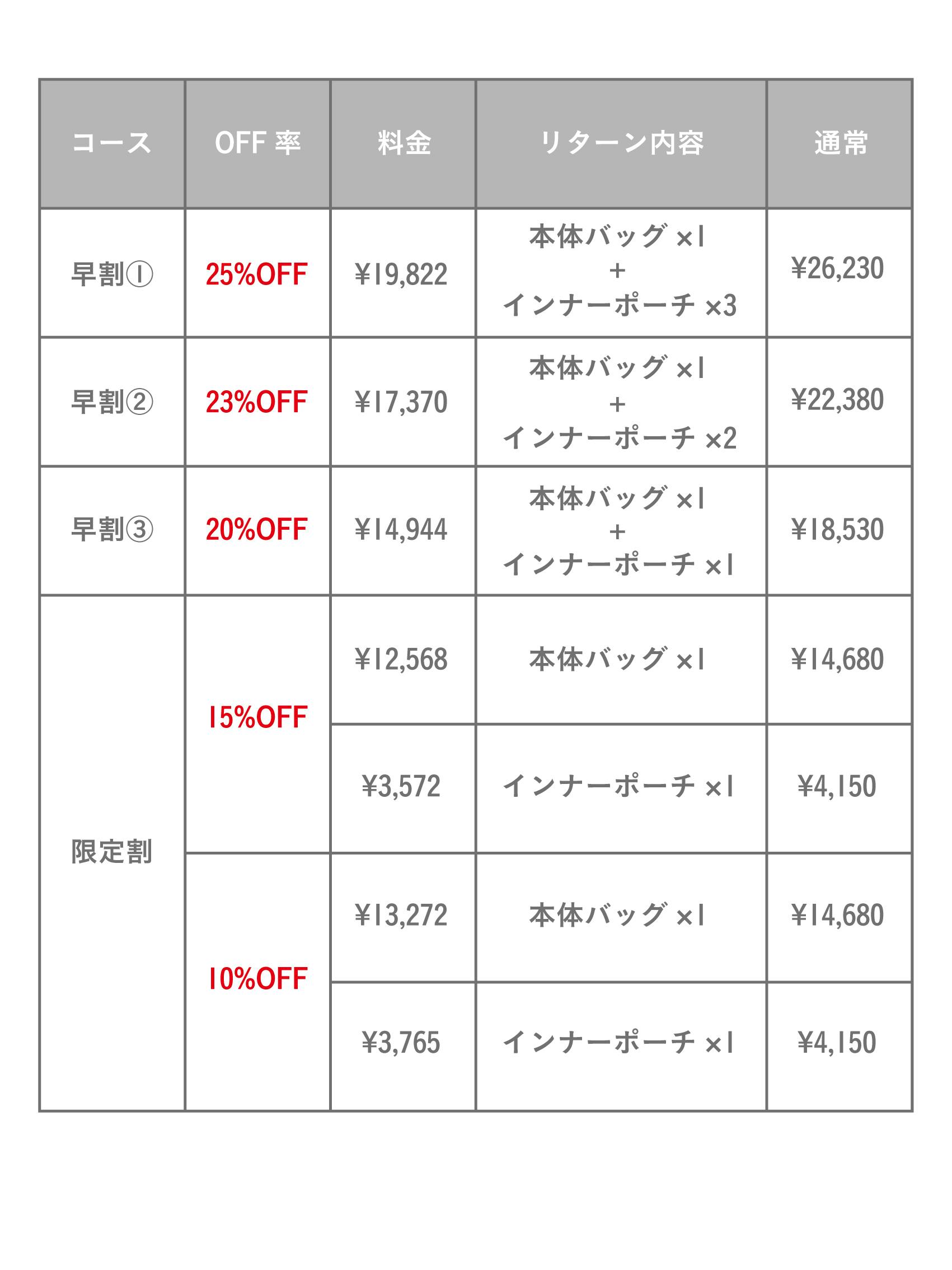 インナーポーチのみのコースのみ¥300