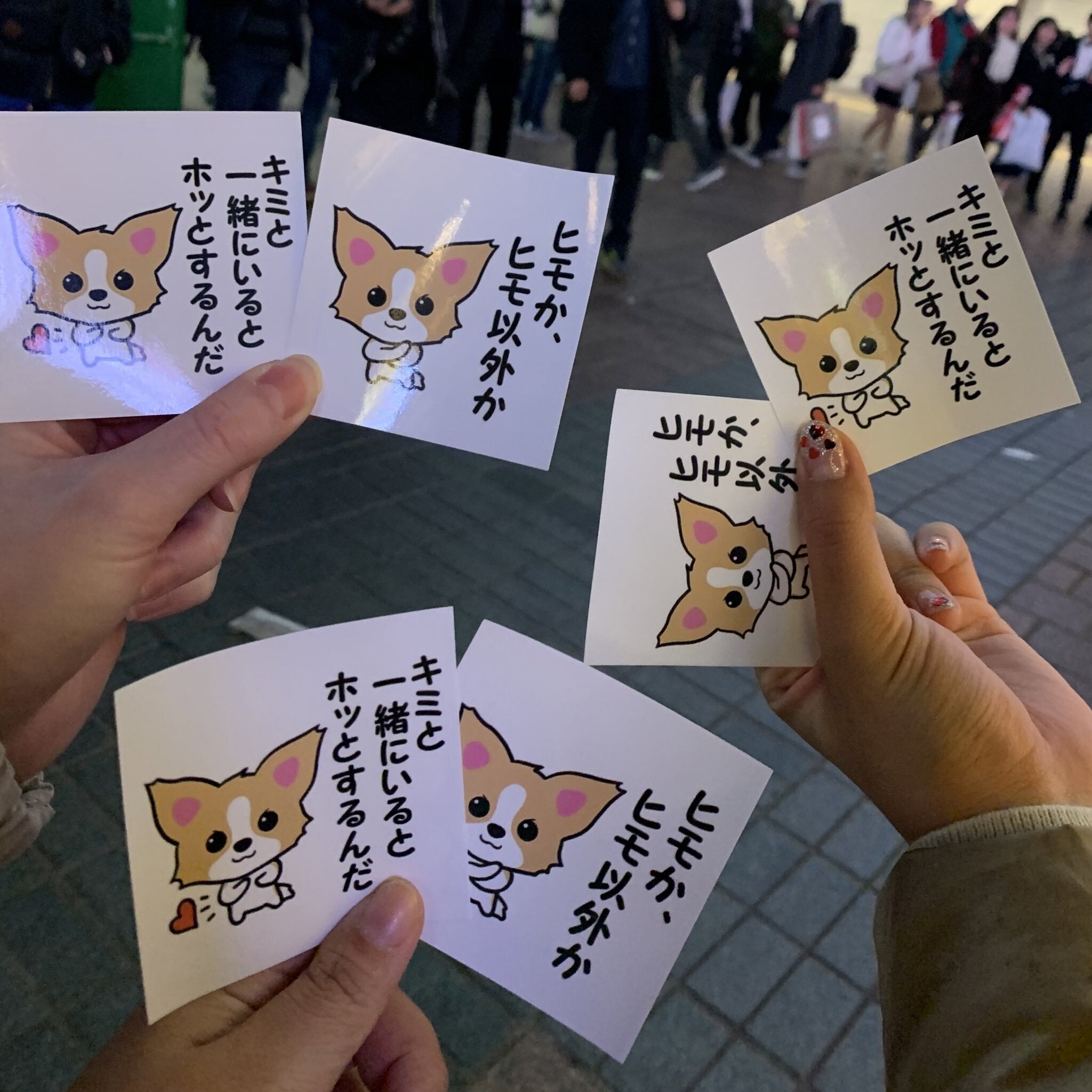 また、「ひもチワワギフト」としてステッカーを期間限定で渋谷で配ったりしました。
