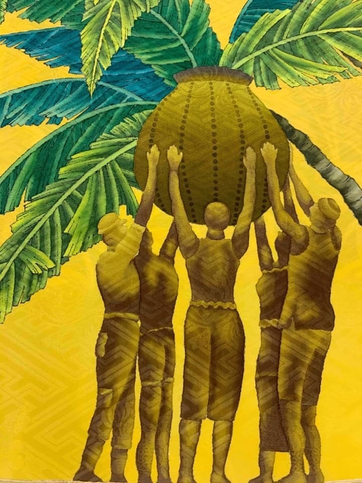 それは今回のKIMONOのデザインとして描かれているのですが、ベナンには大切な水を運ぶ水瓶にひびが入ったりしているのですが、水が漏れないようにみんなで手で塞ぎながら運んでいるという有名な像があります。人も地域も、国も世界も本当は皆そうありますように、また自分自身がそう在ることが出来るようにという願いと誓いも込めて、そこに共感してくれる人たちと一緒にプロジェクトの成功に向けて楽しんで行きたいと考えてます。