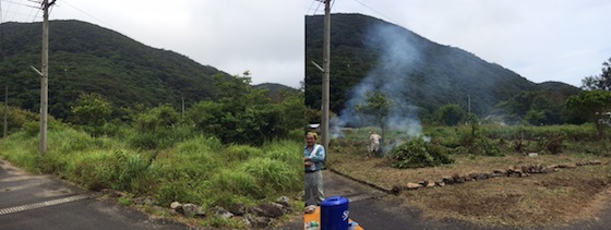 こんな感じの「集落作業」が、嘉入集落では毎月1回、第2木曜にあります。作業の頻度は集落によって違いますが、嘉入は人口が少なく、一度にできる範囲が限られているので、毎月やってもなかなか追いつきません。今は元気な70代、80代のお姉様方も、いつまで頑張れるか分かりません。という現状に危機感を感じて、このプロジェクトの立ち上げに至ったわけですね。