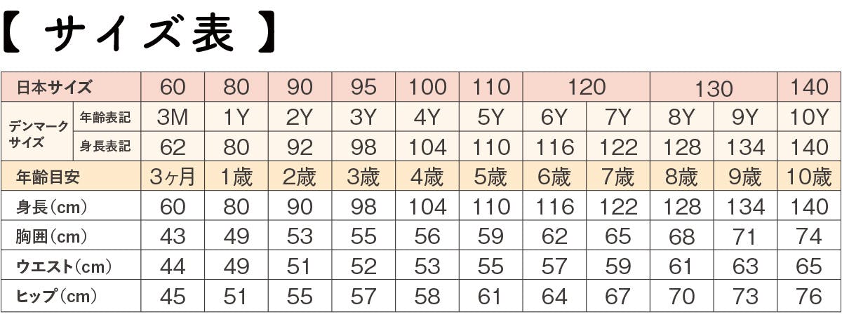 デンマークの子供服は、ブランドによって年齢表記のものと身長表記のものがあります。
