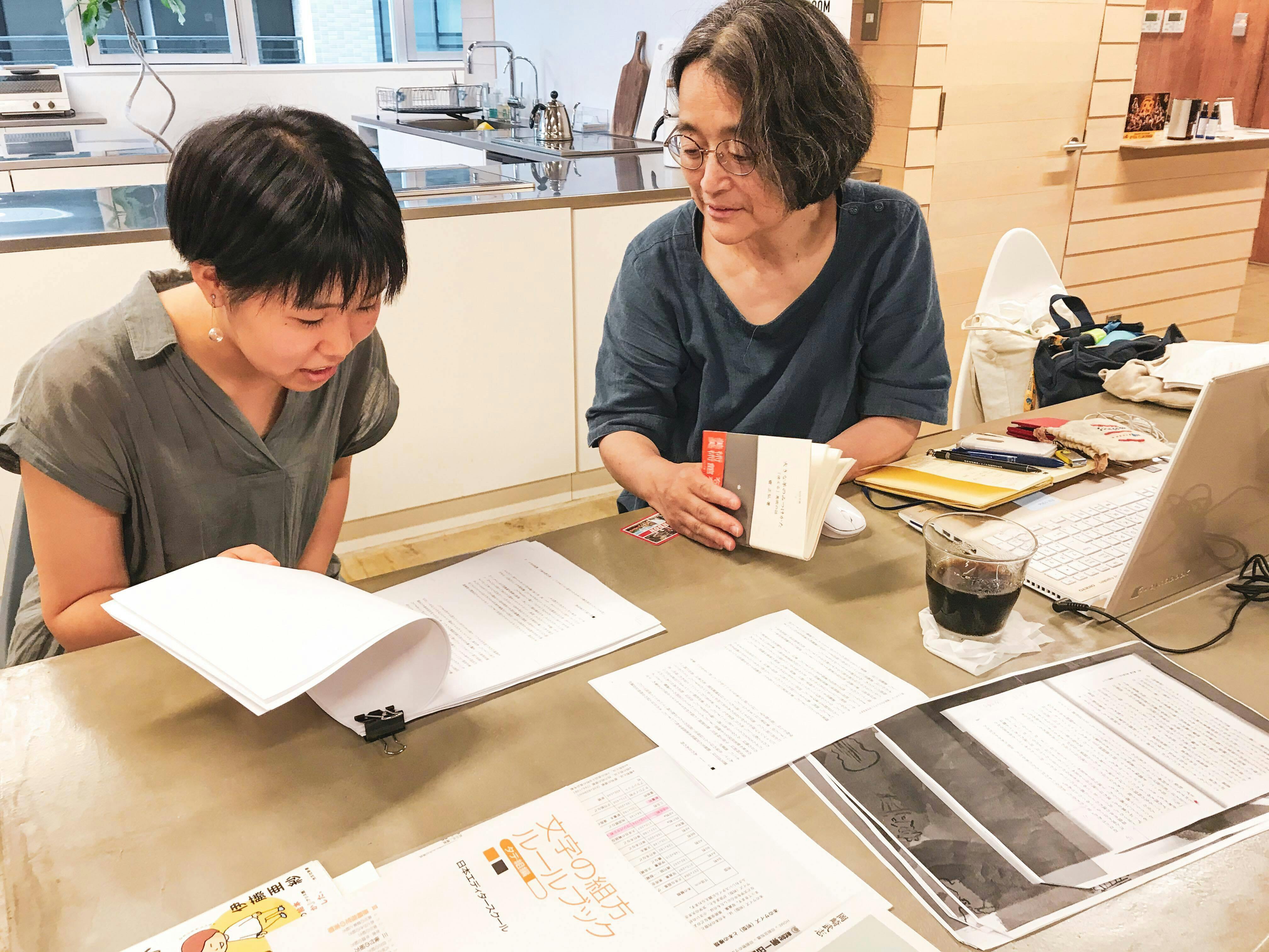 8月11日、制作ミーティングを行いました。表紙についてデザイナーとの打ち合わせをし、その後、本文レイアウトの確認、タイトル案出し等を行いました。