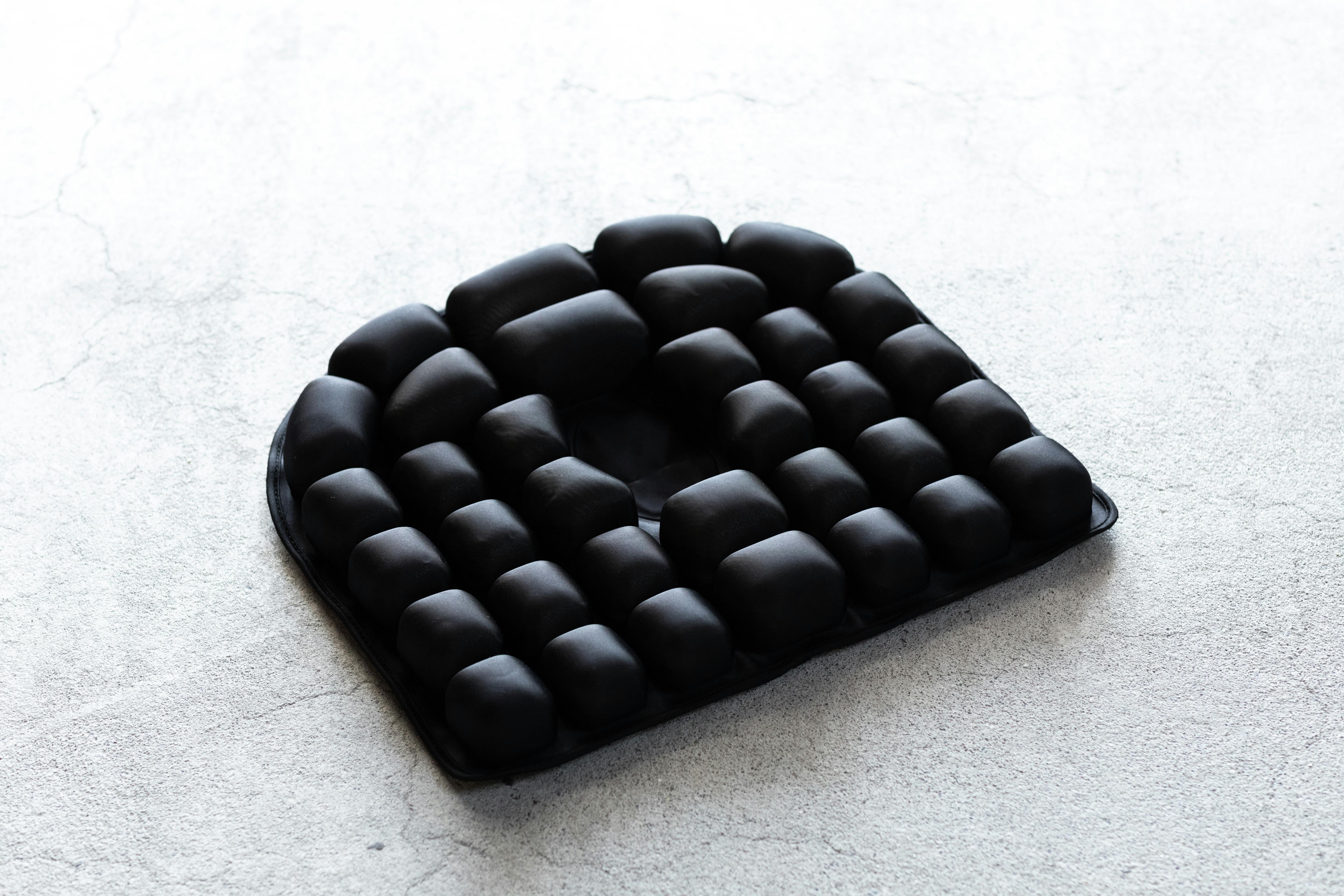 隣接するセルとセルは小さな管でつながっているため、座ったときに空気がクッション全体に循環し、それぞれのセルがからだにそった適切な形に移行します。