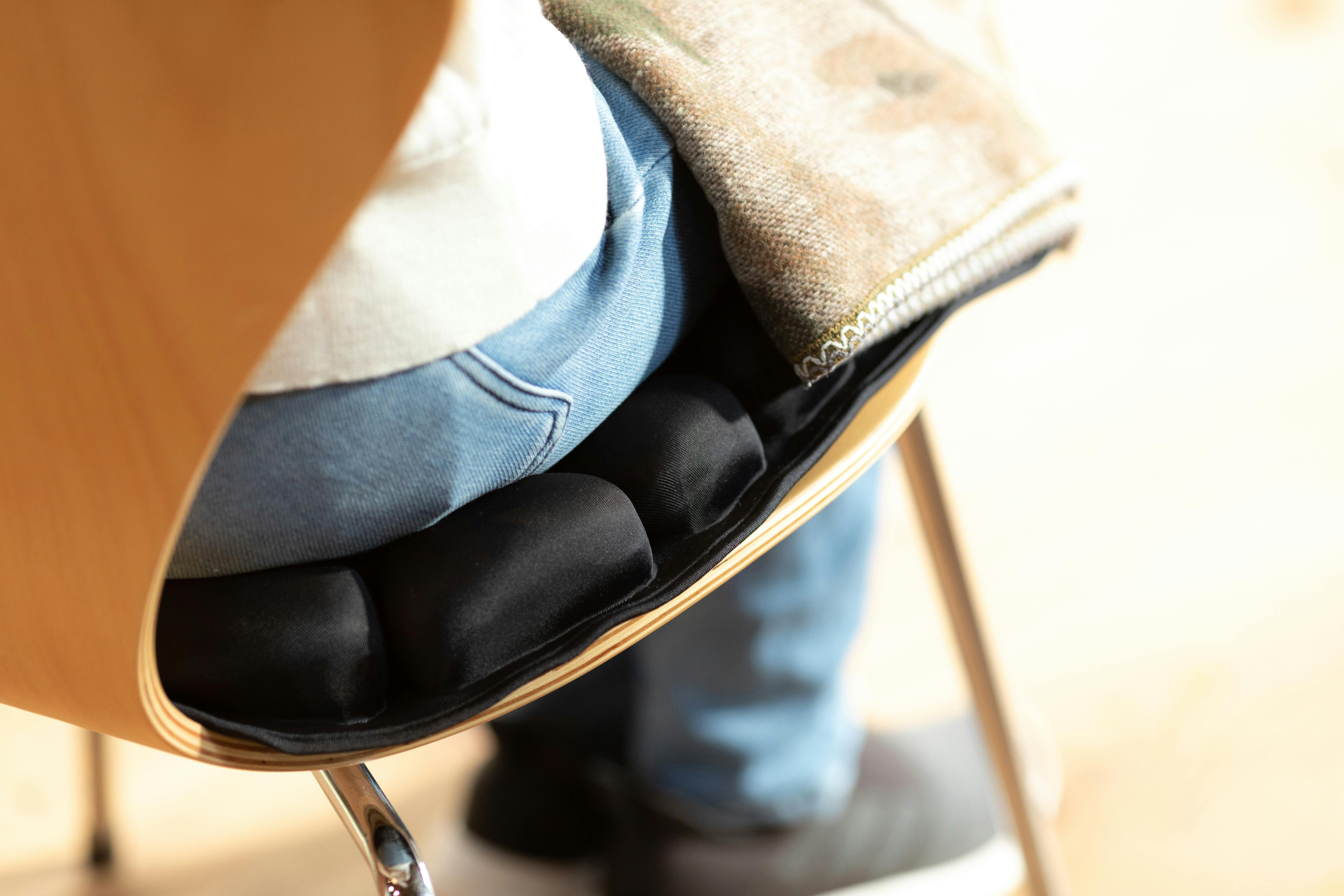一部に集中しがちな圧力をエアクッションが分散します。そのため、体にかかる負担が分散され快適に座ることができます。