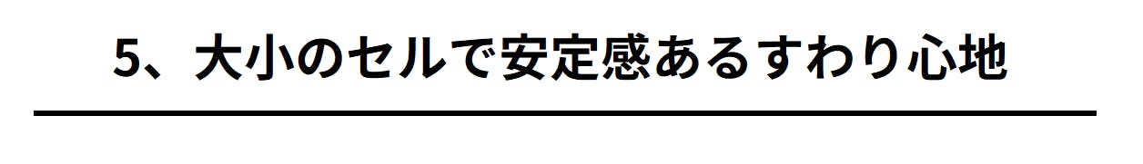 人間工学に基づいて設計された大きさ・形・高さが異なる 新開発エアセル が体をしっかり支えることで安定感が加わり快適で楽な座り心地がさらに進化。
