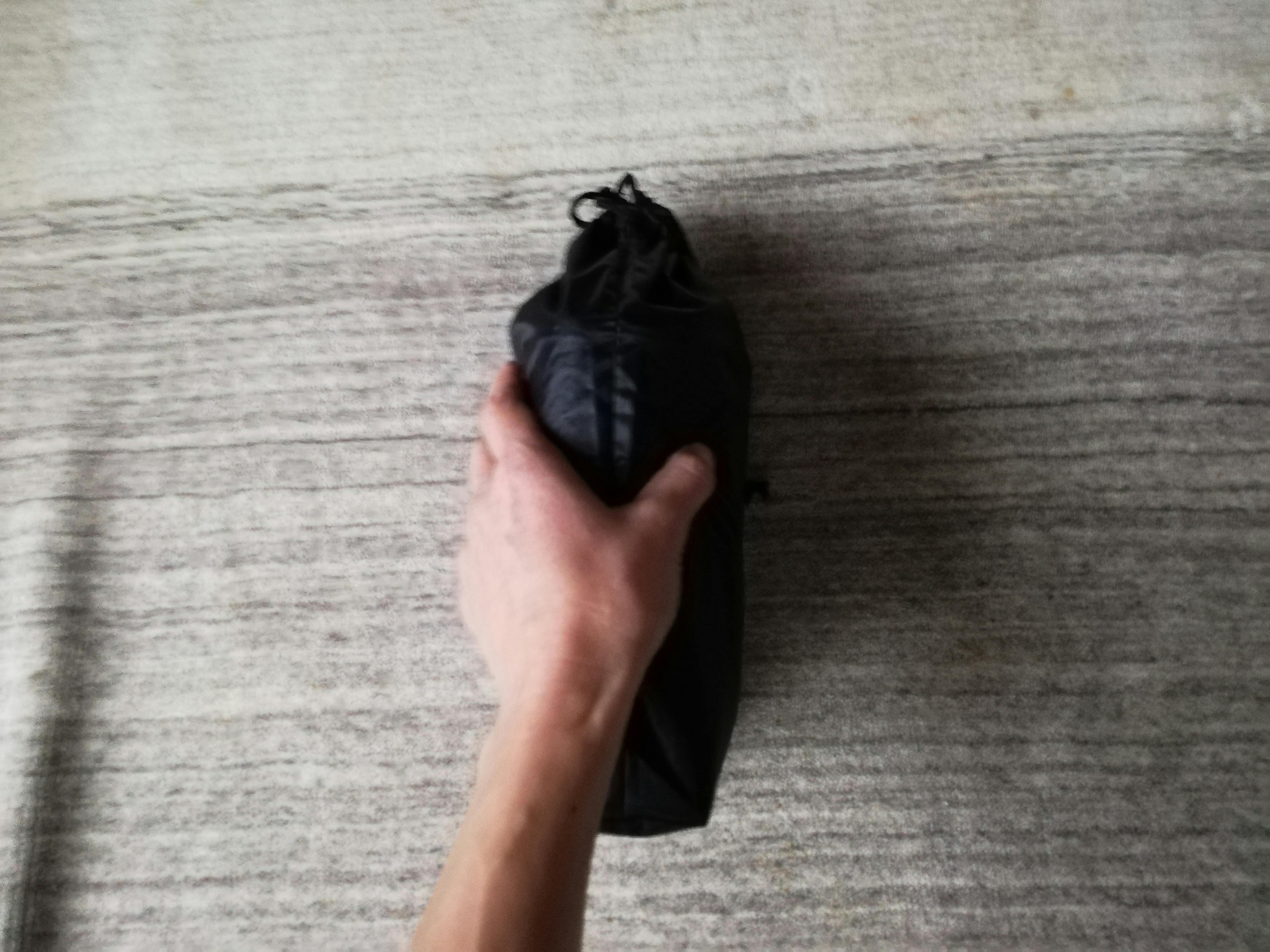 空気を抜いて折りたたむとコンパクトで持ち運びもできます。下の付属のポーチに入れて出張や旅行、アウトドアに最適です。
