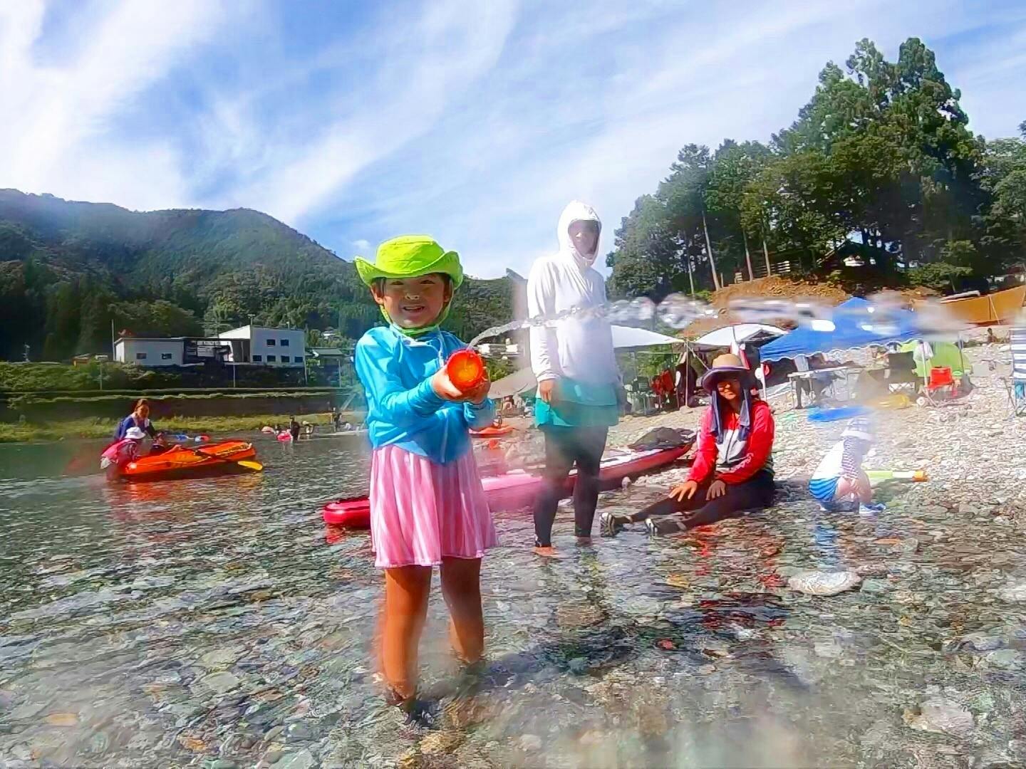 激しい瀬があるような場所ではなく、小さなお子様でもライフジャケットを着用することにより安心して遊んでいただける瀞場になります。