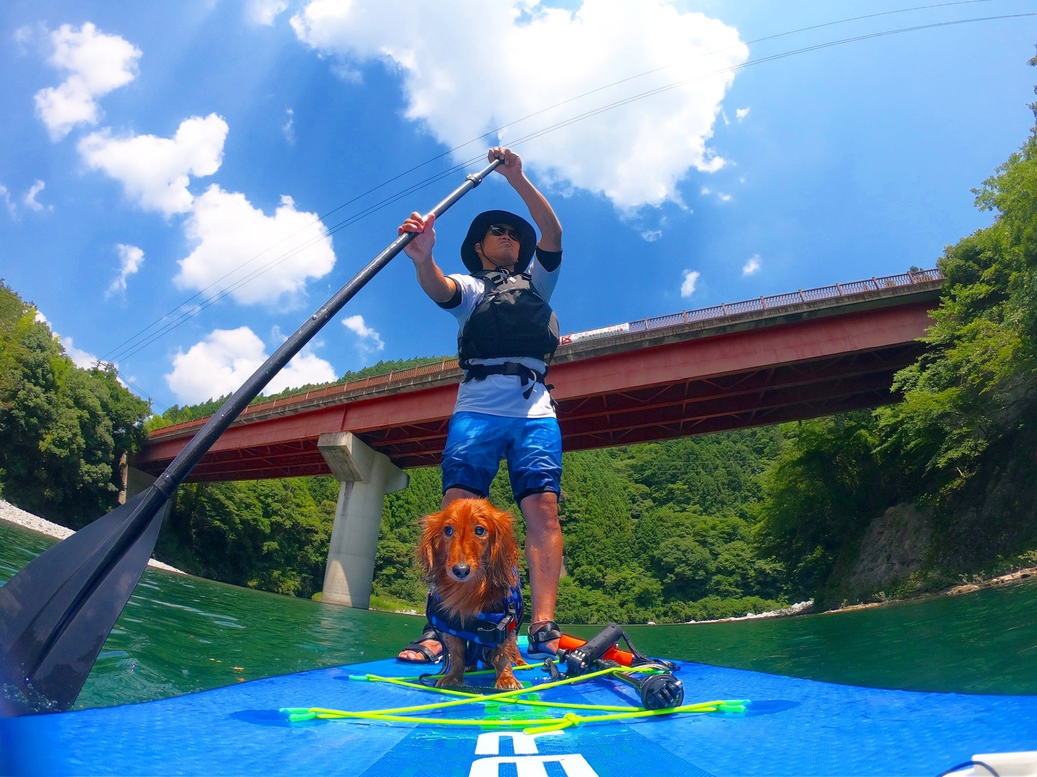 愛犬にもライジャケを着用させることで、Dog SUPも可能ですよ。