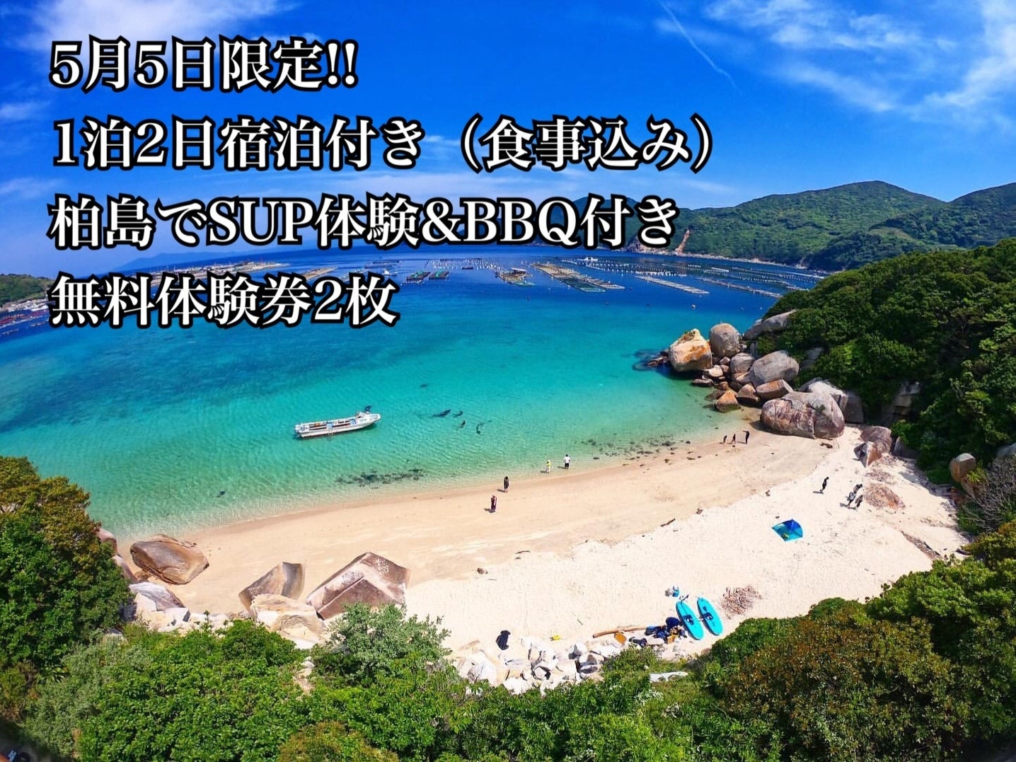 2020年5月5日限定!! 毎年ゴールデンウィーク恒例の高知SUP同好会イベントへの参加となります。 昨年は初めてのかたやお子さま含め19名のかたにご参加いただきました。1泊2日宿泊込み(食事付き) 柏島SUP体験2DAYS&1日目のBBQ付き 無料体験券2枚(1枚につき1名様) ※場所:高知県柏島(高知市から車で3時間) ※無料体験券の有効期限:2020年5月5日のみ※現地までの移動は各々でとなり実費負担となります。