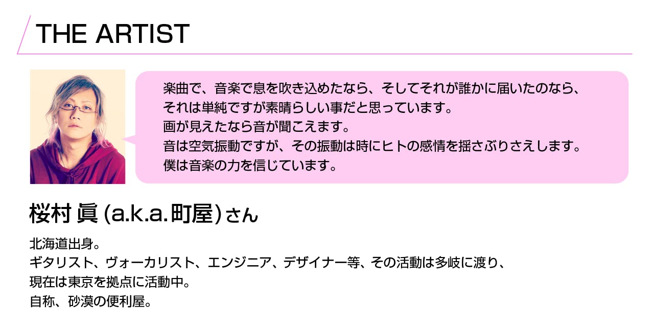 そしてMμが展開していく楽曲のコンセプトの監修、及びリアルライブの制作において、和楽器バンドのメンバーとして第一線で活躍されており、作曲家、ヴォーカリスト、ギタリスト、ボカロPとしても多数の実績をお持ちである桜村 眞さんに、Mμの最初のテーマソング制作をお願いする事に致しました。